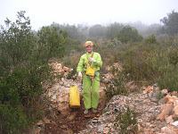 Una vez cogidas energías nos dirigimos al Balconet. Es una cavidad salida de la nada. Un día prospeccionando la zona vieron una mancha de humedad en el suelo y comenzaron a excavar. Me imagino la impresión que se llevarían al conseguir el primer agujero por pequeño que fuese. La cantidad de aire que sale por la boca es impresionante, tirando tierra a la cara durante los primeros metros del descenso. La cavidad es muy deportiva y bastante calurosa, con algunos pasos estrechos que ponen a prueba las barrigas cerveceras. Amenizados con las explicaciones de Lluís y Jaume sobre la cavidad, fuimos descendiendo a través de sus diferentes galerías y pozos. Un equipo iba topografiando y los otros hicimos algunos tanteos de mover piedras para encontrar nuevos pasos. De todas formas Lluís y Jaume no nos querían explotar y se lo plantearon como una actividad turística para presentarnos la cavidad y ofrecernos nuevas visitas.