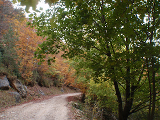 Tanto el sábado como el domingo tuvimos mucha suerte con la climatología, durante los días previos había llovido intensamente en Catalunya, pero a nosotros solo nos llovió unos 10 o 15 minutos una fina película de agua que no nos obligo ni tan solo a ponernos el impermeable. El paisaje absolutamente espectacular, con las hojas de los arboles con una variedad increíble de colores: diversos tonos de verde, amarillos, naranjas, rojos... un auténtico disfrute.